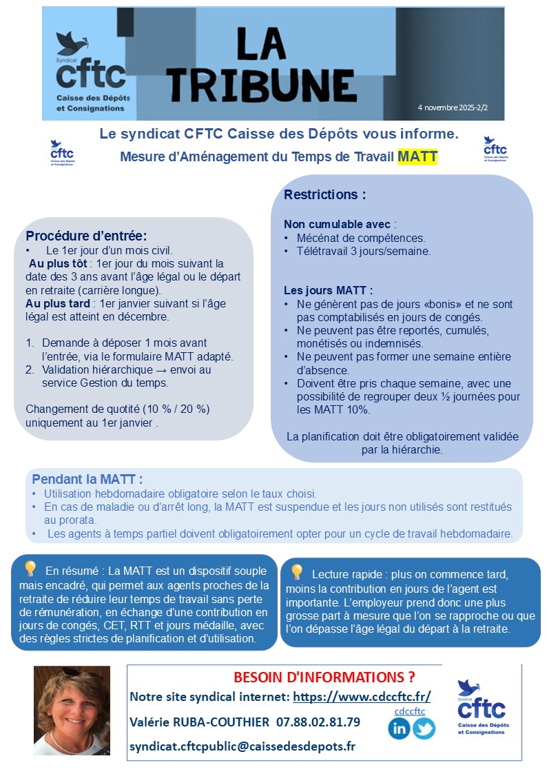 Tribune 4 novembre 2025 : Mesure d’Aménagement du Temps de Travail MATT à la CDC.